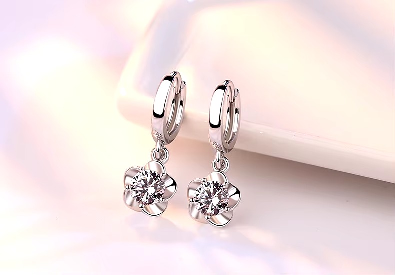 Elegant Silver Flower Drop Earrings with Sparkling Crystals