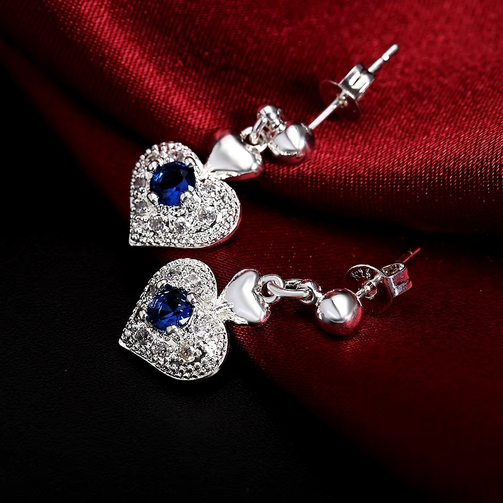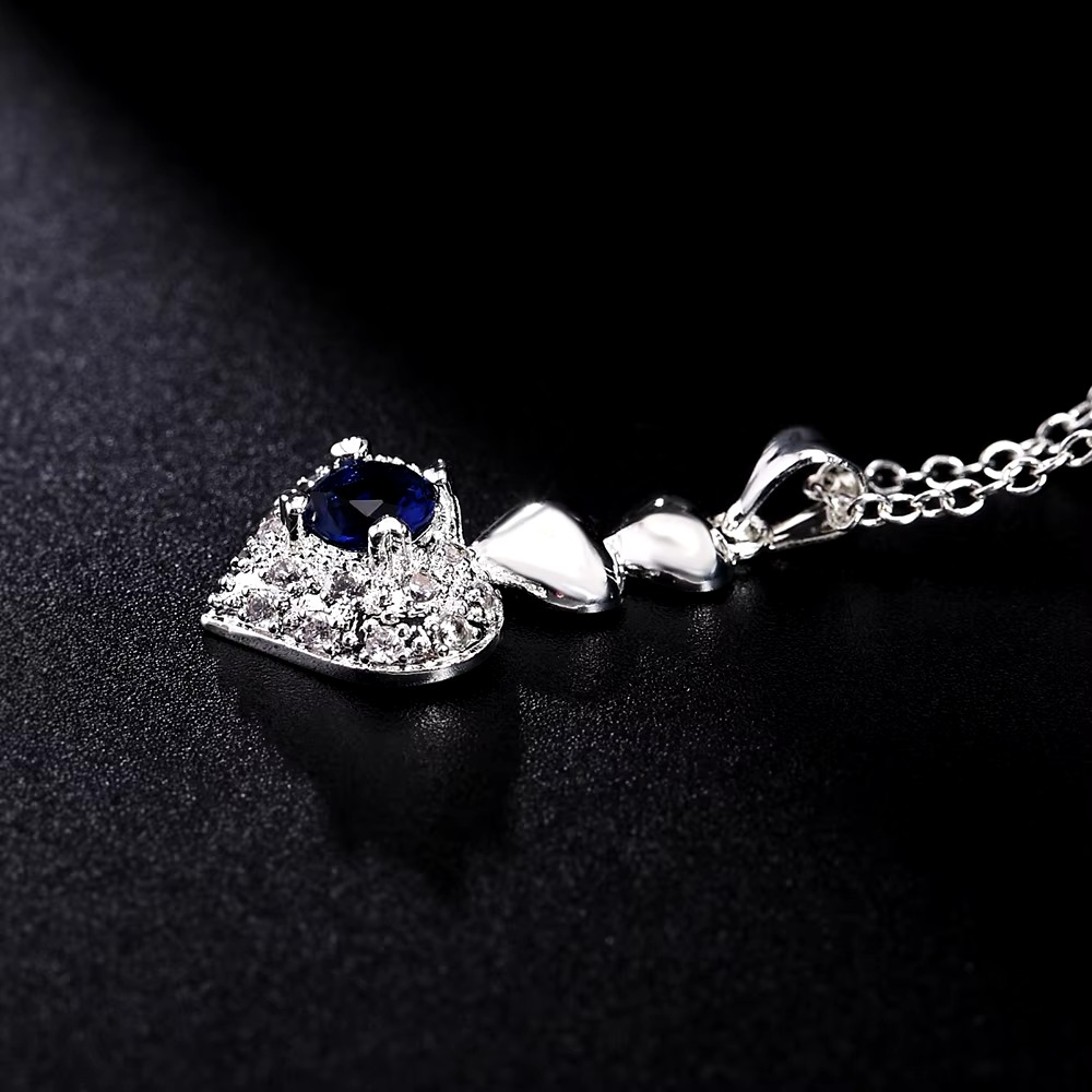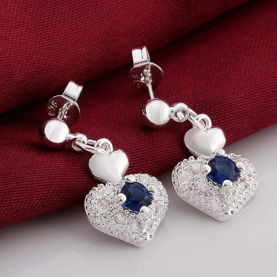 Italian Sterling Silver Heart Necklace & Earring Set – 925 Silver with Blue Stone